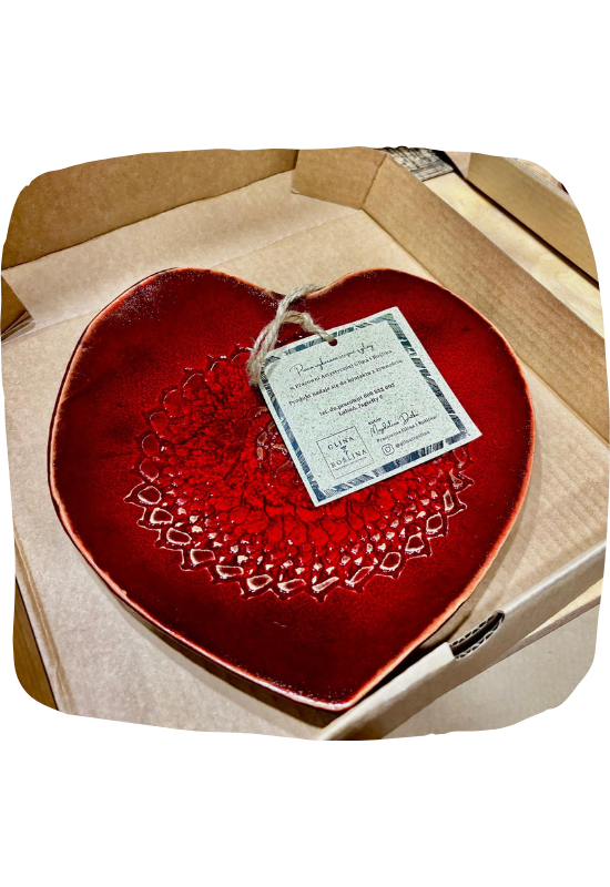 Wyjątkowa patera ozdobna w kształcie serca, wykonana ręcznie z gliny w pracowni Glina i Roślina. Każdy egzemplarz powstaje z uważnością i dbałością o detal, dzięki czemu jest niepowtarzalny – subtelnie różni się fakturą i odcieniem, podkreślając charakter prawdziwego rękodzieła.